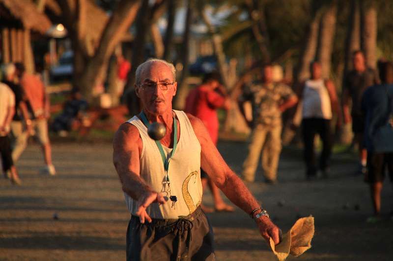 おっちゃんたちは、昼間っからペタンクを延々とやっています。