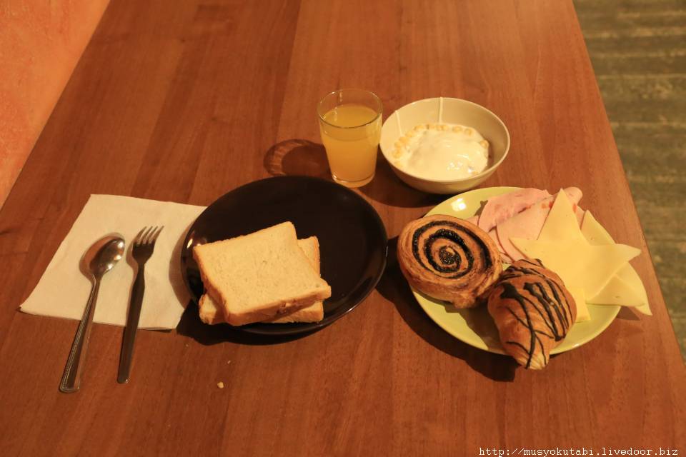 朝食は750フォリント(≒300円)で、ビュッフェ形式でした。