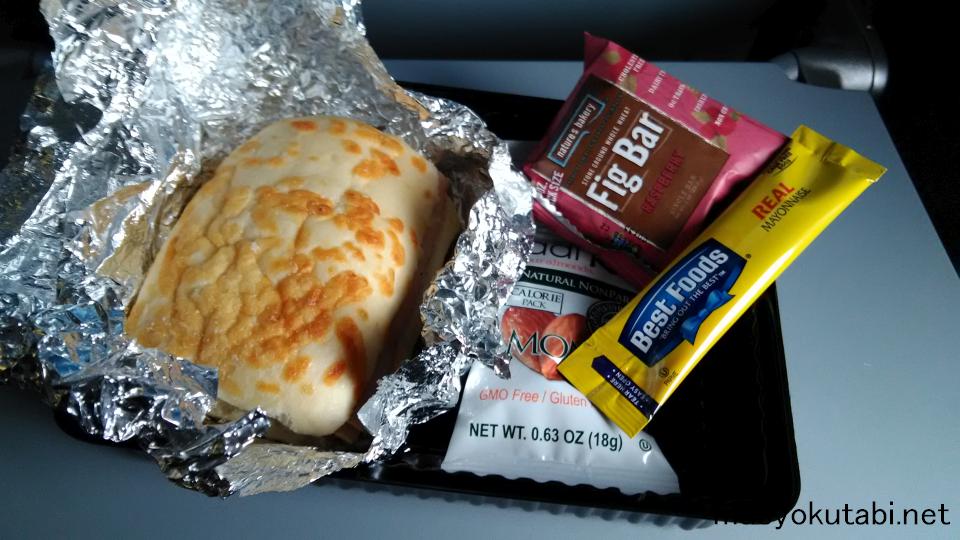 機内食はハンバーガーみたいなのが出ました。